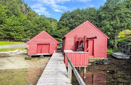 Timber house "Åsvågen". 5 km from the centre of Bruntveit, 45 km from the centre of Leirvik, 68 km from the centre of Bergen, on a slope, 200 m from the lake, 500 m from the fijord. Bathing jetty fish-processing table. Private: natural state property 1'000 m2 with trees. Bathing place, fish-processing table. Rowing boat with motor (on request). 20 m footpath (7 steps) to the house. Parking on the premises. Shop 5 km, supermarket 22 km, bus stop "Åsvåg Kryss" 90 m, ferry "Bergen" 68 km, sandy beach 600 m. Fishing possibilities 600 m. Nearby attractions: Uggdal boat rental 17 km.