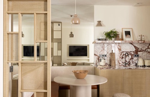 an exquisite sanctuary in the city’s prestigious 8th arrondissement, élysée collection v welcomes up to four guests From this desirable location, the dazzling Parisian lifestyle beckons, from dining at Michelin-starred restaurants to browsing the latest collections from lauded French fashion designers. The sweeping Place de la Concorde, a short walk from the apartment, is the ideal spot to sip your morning coffee before heading off on an odyssey through the City of Light. From this picturesque square, you can head southeast into the captivating Jardin des Tuileries, strolling through the fragrant gardens, before wandering across to the Louvre. Or head northwest to immerse yourself in the haute couture of the Champs-Élysées, before ducking into one of the avenue’s famous lunch spots. Élysée Collection V offers a quiet retreat from the thrum of the capital. The open-plan living space retains a sense of warmth and intimacy with its earthy colour palette, rich textures, and soft ambient lighting. Get inspired by your culinary adventures in the marble-accented kitchen, while you relax on the plush sofa and watch a movie until supper is ready. There’s a cosy dining nook in the kitchen with a cushioned bench, just right for unhurried meals over a bottle of wine. The home’s beautifully presented bedroom offers ample wardrobe space for all your new purchases, along with a floor-to-ceiling mirror to let you admire them. Climb into the sumptuous king-size bed, where a statement headboard offers bespoke lighting for reading sessions before you drift off to sleep. The bathroom features a spa-style design with bold marble accents, including twin vanity sinks and a waterfall shower. Two further guests can be accommodated on a comfortable sofa bed in the living room, making Élysée Collection V the perfect choice for small families. Though there is a wealth of cultural attractions and boutique shopping on your doorstep, you can also explore the rest of the city with ease, thanks to the Miromesnil Metro station being just moments away.