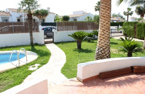 Rental villa in Denia (Costa Blanca) This beautiful villa with private pool is situated aprox. 1,5km. from the sandy beach, 700 m from a peble beach, 1,5km. from the supermarkets, restaurants and the town Els Poblets and 9km. from Denia. With capacity for 6 people. The photos are generalized since we have several villas in the same area. The villa consists of private pool with metal stairs, lawn around the swimming pool, terrace with garden furniture...inside with lounge dining room with t.v. (satellite), kitchen, 3 bedrooms and 2 bathrooms, one with shower and the other one with bathtub.