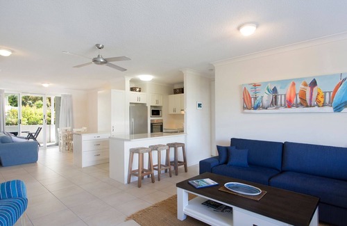 located on the first level, this unit features 2 bedrooms (king and 2 singles) and 2 bathrooms, including an ensuite to the master and a full bath in the family bathroom Modern comforts include air conditioning and ceiling fans throughout, as well as built-in robes.