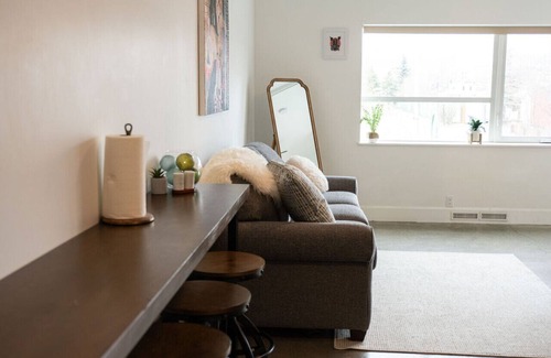 Welcome to our modern 1-bedroom flat located in the heart of downtown Anchorage. Comfortably sleeps up to 4, the space features a king bedroom, full kitchen, tiled spacious bathroom, and a large living room with a queen sleeper sofa. Convenient and central for up to 4 travelers, the location is perfect for exploring the best of the city.