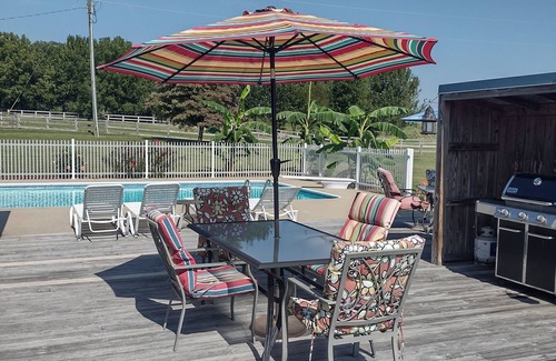 venture outside and you'll find a heated private pool, perfect for a refreshing dip on a warm day Soak up the sun on the beach loungers. Bring a fishing pole, try your luck at the fully stocked fishing lake. Explore the nearby attractions, such as the My Old Kentucky Home State Park and the Heaven Hill Bourbon Heritage Center, both just a short drive away.