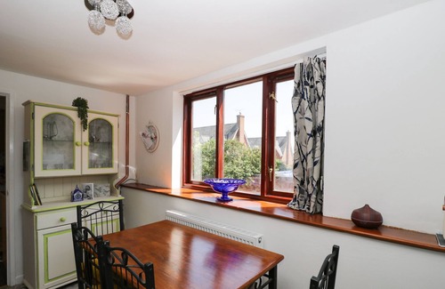 amenities: gas central heating with electric fire Electric oven and hob, dishwasher, fridge, fridge/freezer, microwave, Smart TV, WiFi. Fuel and power inc. in rent. Bed linen and towels inc. in rent. Highchair, travel cot and stair gate available on request. Roadside parking. Courtyard with seating and communal path leading to private raised garden with lawn, furniture and barbecue. One small well-behaved dog welcome. Sorry, no smoking. Shop within 0.2 miles, pub within 0.1 mile. Note: The dogs must not be allowed upstairs or on beds.