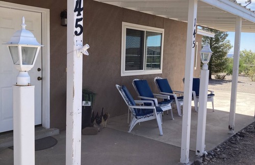 Minutes from Elephant Butte Lake. 3 bedroom home with newly renovated kitchen. Home sleeps 6 comfortably, 9 creatively. Large comfy sectional, large living room with wood burning stove. Large front porch for enjoying morning coffee or evenings by the fire pit. There is nothing like coming off the lake and being able to take a shower, grill, watch a movie or play games with family and friends. Plenty of space to park your lake toys as well as RV cleanout on site..