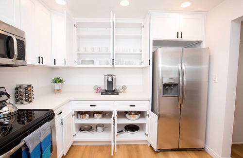 everything in our home is brand new We just finished a full remodel including the kitchen, bathroom, floors, windows, and furnishings. Our home is a 600 sq ft one bedroom apartment on the top floor. It is in a residential neighborhood with wonderful neighbors who are always riding their bikes and walking their dogs. We are 1 mile from Downtown Long Beach and 0.5 miles to the beach. Enjoy the convenience of city living with the ambiance of a tree-lined residential neighborhood.