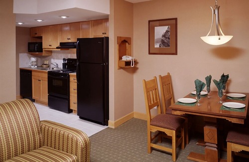 this smoke-free condominium resort features a bistro restaurant, bar/lounge, a coffee shop/cafe, indoor swimming pool, indoor and outdoor hot tub, health and fitness center and sauna, squash courts, outdoor tennis courts, basketball court, bike rentals, onsite laundry facilities, complimentary wifi, free parking, and free shuttle to downtown banff