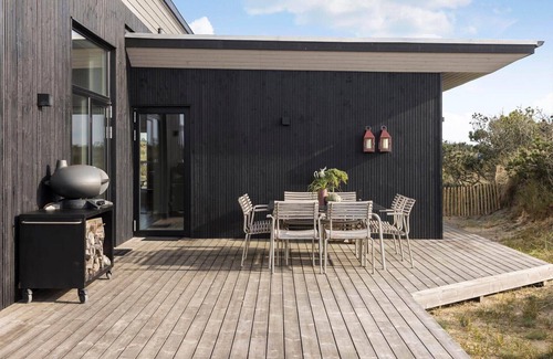 lyngbakken 9 in nr Vorupør offers a modern holiday apartment that seamlessly blends stylish decor with a tranquil setting and picturesque nature. It features three spacious bedrooms, including three double beds and two single beds, accommodating families with ease. The open kitchen is fully equipped with a dishwasher, oven, microwave, refrigerator, and coffee maker, ensuring a convenient cooking experience. The living area, enhanced by a Smart TV and cozy ambiance, serves as a perfect gathering spot. The apartment boasts two bathrooms, one of which includes a luxurious freestanding bathtub, alongside a practical shower. Additional amenities include Wi-Fi, a washing machine, dryer, and underfloor heating for year-round comfort. Guests can unwind on the large terrace, ideal for socializing, while the nearby attractions, including the stunning North Sea, are just a short walk away. This is where unforgettable memories come to life.