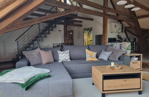 135m² Galeriewohnung mit Aussicht 4-6 Gäste Aufbettung bis 8 Gäste is located in Schirgiswalde-Kirschau. 135m² Galeriewohnung mit Aussicht 4-6 Gäste Aufbettung bis 8 Gäste provides accommodation, featuring Child Friendly, Kitchen, Pet Friendly, among other amenities. This Apartment features Child Friendly, Kitchen, Pet Friendly, to make your stay a comfortable one.