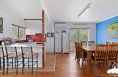 a great two storey family beach house that sleeps up to 11 people It is an older style house with lots of light filled-spaces.