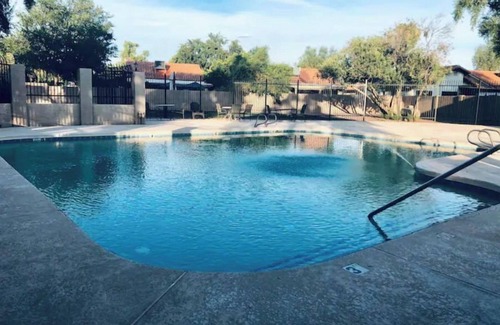 guests have access to their private hot tub in the backyard, putting green, grill… private rec room connected to the property You may also use the pool located just down the street… There’s so much to do here you will not be bored and all within 15 minutes of downtown Scottsdale.