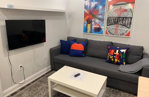 Artistic 1bed Apt, excellent location to Commute to NYC. Bus stop one one block away. This apartment was recently renovated and professionally decorated to make your stay pleasant and in style. Bedroom has a queen bed, full of closet space, at the living room there is a full sofa bed. TV wifi, a complete equipped kitchen. Elevator and laundry room in a common area. We also offer private parking for a daily fee.