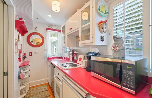 this charming guest cottage sits behind the main home, cabana fever, and is accessed via a sandy footpath leading to a private picket fence entrance