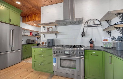 This beautifully renovated 4-bedroom, 3-bath farmhouse is thoughtfully designed with care and furnished with high-quality pieces from Pottery Barn, West Elm, and vintage finds. To enhance your luxury retreat experience, we provide premium white linens, plush bath towels, and a fully stocked chef’s kitchen. Personal care products, including hair and body care, are from Public Goods—natural, eco-friendly, and sustainable.