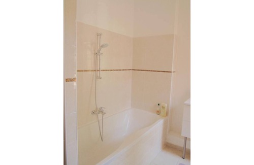 access to the 1st floor via an 18th century stone staircase Upstairs: 5 air-conditioned bedrooms. 1st bedroom of 10 m² with 1 double bed 140x190cm. 2nd bedroom of 9 m² with sofa bed for 1 person. 3rd bedroom of 14 m² with 2 twin 90x200cm beds. 4th bedroom of 8 m² with 1 double bed 140x190cm. 5th bedroom of 12 m² with 2 twin 80x190cm beds. Small bathroom / WC with small shower. Bathroom with tub and shower, heated towel rail.