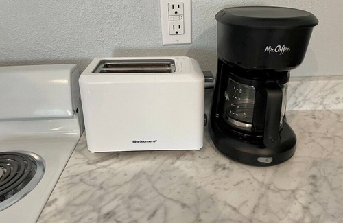 - our small but mighty kitchenette is stocked with the basics to make a meal: