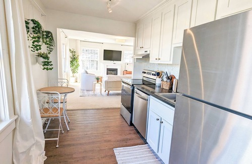 You'll love the abundant natural light in this peaceful one bedroom retreat. We are located in the Pettigru Historic District and are just a 5 minute walk from Bon Secours Wellness Arena and a 10 minute walk to Main Street downtown. Not only that but we're just a 5 minute walk from the Swamp Rabbit Trail and a 10 minute walk to Cleveland Park and the Zoo! This is an upstairs unit (1 of 3 total units located within the triplex) and has a private, exterior entrance. There's a kitchen with all the utensils, pots, bowls, plates, cups, etc. that you could need for your stay as well as a stocked nespresso machine!