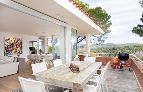 House located in a privileged area just 800 metres from the tranquil beach of Llafranc - one of the most beautiful beaches on the Costa Brava! Close to all shops, restaurants and supermarkets.Outdoor area with private swimming pool (8 x 4m), chill out area, barbecue and garage.Maximum capacity for 8 people.Recently renovated house of 225 m2 distributed over 2 floors and surrounded by a large terrace with panoramic mountain views. On the first floor, there is a spacious living-dining room with a fireplace, 1 toilet, and direct access to the furnished terrace.Fully equipped kitchen with everything necessary for cooking: gas cooker, cutlery, frying pans, combi fridge, wine fridge, microwave, oven, washing machine and dishwasher. 1 bathroom (bathtub). On the ground floor there is a suite with a double bed and shower, 2 double bedrooms, and 1 double room (2 single beds) all with access to terrace.Free Wi-Fi.Pets not allowed.No bookings are accepted for young people under 35 years old.House located in Llafranc, one of the most charming towns on the Costa Brava!.