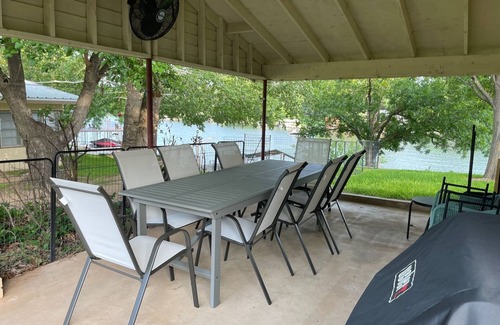 Perfect house for a weekend retreat for up to two families. This two-bedroom/two-bath house has 2 bunk-beds with trundles in the living room. 107 feet of lake-front on Lake LBJ. Located at the top of Lake LBJ, approximately 100 yards from the start of the shallow area with large rocks that has no boat traffic, where you can enjoy peace of mind while kayaking and paddle boarding.