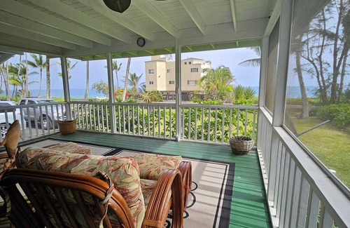 Just steps from the sea, this home is all about ocean view living. 2 ocean view bedrooms on opposite sides of the house maximize privacy while creating an open and social space between them. The kitchen and living space a have large French sliding doors that open wide to a massive screened in lanai where you can watch for seasonal whales, or simply take in the fresh Tradewind air where is first contacts the Hawaiian Island chain! Fully furnished and prepped for immediate comfortable living..