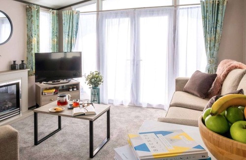New in 2022. Stylish contemporary lodge with one kingsize double with en-suite shower and walk-in wardrobes. One twin. Family bathroom. Spacious lounge/kitchen/dining area. Doors opening out to decking with garden furniture and a luxury outdoor hot tub. No pets.. Peacefully situated amidst beautiful Ayrshire countryside, yet just 2 miles from the fabulous amenities of bustling Ayr, this friendly and relaxing park offers a perfect base for exploring Scotland’s glorious south west. A launderette*, coffee lounge, play areas, 18-hole crazy golf and nature walks are available on the park for all dates. *Charges apply. A shop is also available (April-October).