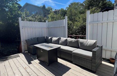 Unwind in Newland at this lovely cabin. With 2 bedrooms, including 1 queen bed and 2 twin beds, and one sofa bed, our property is perfect for a group of guests. The cabin also features 1.5 bathrooms with amenities like a hair dryer, shampoos, soaps, linens and shower. You'll find additional space in the living room, complete with the cozy sofa bed previously mentioned. Whether you're exploring the city or simply relaxing indoors, our fantastic cabin provides everything you need for a terrific getaway. Make your holiday one for the books with a stay at our place.