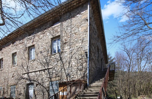 nestled in a park-like garden, this former silk mill from the 19th century welcomes you at the foot of the tanargue massif Make yourself comfortable in the lovingly rustic interior and look forward to convivial meals at the round dining table and cosy reading sessions on the sofa, while the scent of the centuries-old trees wafts through the rooms and the wood-burning stove crackles softly.