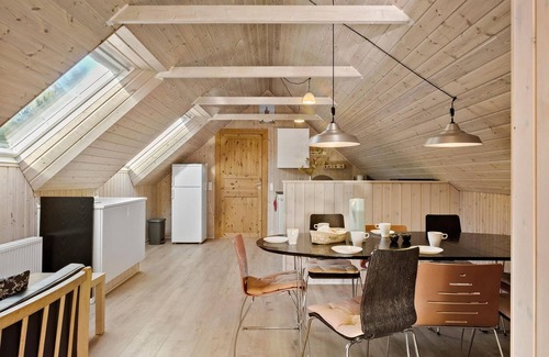 leave everyday life behind and spend a relaxing holiday in the bright apartment, which welcomes you above a farmhouse in a quiet, rural setting and just a few kilometres from blokhus beach Enjoy the beautiful view outside as soon as you wake up and let your gaze wander over the surroundings through the gable window after an active day on the inviting sofas. Use the cosily furnished accommodation as a base for wonderful days at the beach and exploring the surrounding area. The infrared sauna and massage table offer great opportunities for soothing relaxation.