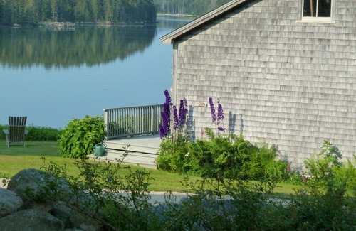 wonderful getaway! an enchanted seaside classic with expansive views straight down secluded crockett cove Sun filled, sedate, romantic and beautifully appointed. Astounding views of the huge rolling wild flower filled central meadow of Cove Meadow. Owner Managed with an eye to detail, and a view to your comfort and enjoyment of all that is here to experience. Sited on 7 magical acres of mostly open meadow surrounded by stands of ancient trees and moss carpeted forest with one 1/4 mile of private shore, the cottage has its own exclusive two acres and 300 feet of shorefront.(It is the guest cottage to the main house but quite independent with no shared facilities or space. Own Organic kitchen garden and own exclusive firepit. Excusive free access to two small kayaks and one canoe. On site launch for your small boat. A serene and peaceful retreat for contemplation, or a special occasion ..a favorite of writers, artists, photographers, naturalists, experienced wilderness paddlers, fishermen and amateur astronomers. Kayak launch site on property affords experienced ocean kayakers a wonderful daily departure for exploring the many nearby islands of our spectacular archipelago in the safety of waters outside our busy working harbor. July to October just before and after hi tide fish striped bass right from our shore or by canoe. Delicious clams and sweet wild mussels right from our shore. Eagles, Osprey, Kingfishers every day and an occasional seal or otter. Double Bed in Master B/R..Single in Guest B/R both dressed with down alternative on top of good mattresses, with very fine bed linens. Modern and well equipped kitchen, nice dinner and table ware. Attractive bath w/ glass shower. Ice Cream Maker, French Press Coffee Maker, Espresso Machine, Nicely equipped kitchen.