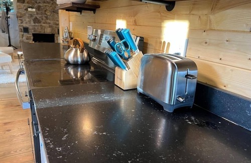 they tiny cabin was a studio for a well known high country artist and has been remodeled to include a full bathroom with tile shower and well equipped kitchenette Sleep in a luxurious queen bed with 100 mile views or sit on the nook by the window overlooking Blackberry Gorge toward Charlotte. The tiny cabin features tongue and groove spruce ceilings and walls as well as a sleeper sofa in the living area.
