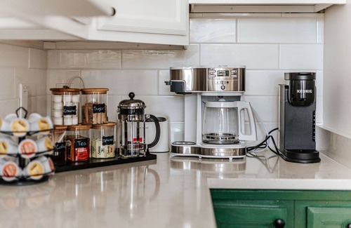 ~coffee station w/drip, french press, keurig, tea, cream & sugar