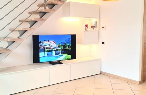 Prestige at Riva del Lario Home Colico is a three-room apartment located in the newly built structure, on two floors, finely furnished with independent entrance, equipped kitchen (dishwasher, washing machine..), living area LCD TV, 1 double bedroom, 1 twin bedroom, 2 bathrooms, Solarium terrace with wonderful view of the lake and the surrounding valleys, free Wifi, air conditioning, free private covered unattended parking space, splendid shared swimming pool. In a quiet area, in the centre. The Prestige and Superior apartments by Riva del Lario Home Colico are adjacent and communicating through a gate between the respective private terraces (the connection is opened on request). These apartments can, therefore, accommodate groups of up to a maximum of 8 beds (4 people for each apartment), very comfortable, for a holiday in the company of friends or family, without losing the convenience of enjoying exclusive privacy, thanks to the possibility of each retreating to their own apartment when they prefer to enjoy moments of tranquility. Riva del Lario Home Colico, the right choice for your holiday!.
