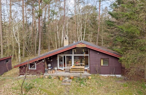 this holiday apartment welcomes guests in one of the most attractive areas of ulvshale skov, surrounded by nature and diverse wildlife including squirrels, deer, and a variety of bird species "Skovhuset" features a cozy open kitchen equipped with an electric/gas stove, refrigerator, coffee maker, and a freezer, ensuring all essentials for meal preparation are at hand. The living area, with a comfortable seating arrangement and a TV for streaming, provides a perfect spot to unwind. Guests will appreciate three spacious bedrooms with double beds, accommodating the whole family, along with a modern bathroom featuring a shower. Amenities such as energy-efficient heating, a washing machine, kettle, and iron enhance convenience. Outside, a partially covered terrace invites relaxation amid serene surroundings, just 600 meters from the kid-friendly Ulvshale Beach. Enjoy a perfect blend of comfort and nature in this inviting retreat.