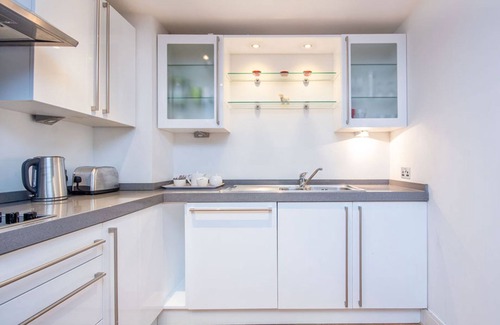 separate toilet. Gas central heating, electricity, bed linen, towels and Wi-Fi included. Welcome pack. Garden with terrace, sitting-out area and garden furniture. Private parking for 1 car. No smoking.. One-bedroom luxury serviced apartment in the centre of the city of Inverness. The property can be arranged with a super king bed or two singles. Free on-site underground parking and Wi-Fi.