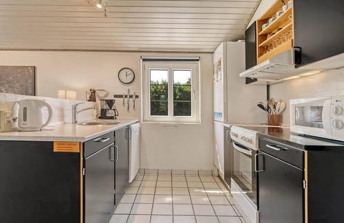 welcome to the charming holiday home in vedersø klit, where comfort and style converge This delightful thatched-roof house features three bedrooms, providing a restful retreat with one double bed and four single beds. With two bathrooms, convenience is ensured for families or groups.