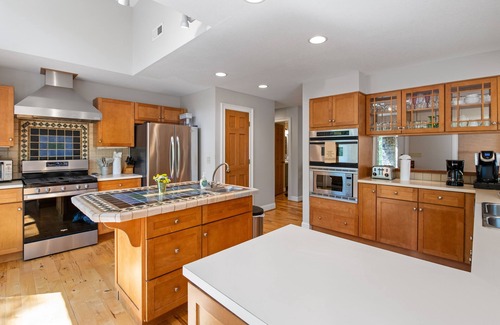 whether you're prepping a holiday feast or bringing in a private chef, this retreat is ready for it all Enjoy two fully equipped kitchens, additional kitchenettes, and ample indoor and outdoor dining spaces. Share meals inside or dine alfresco on the deck—complete with mountain views and string lights to set the mood.