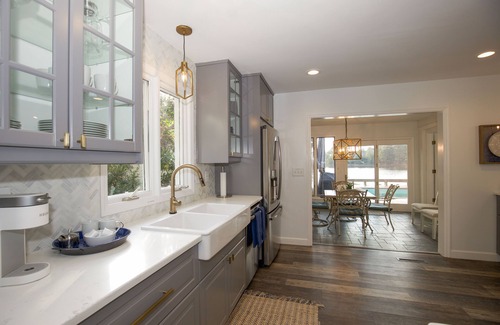 This beautifully renovated home offers the perfect retreat in any season, with breathtaking views of Lake Pinehurst. Designed for relaxation and fun, it boasts a private inground gunite pool, hot tub, and a spacious deck where you can soak in the scenic views. Whether you're enjoying a peaceful morning with a cup of coffee or unwinding in the evening with a drink from the wet bar, this home provides the ideal setting.