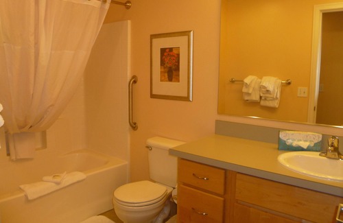 the resort is located on the promenade at the famous turn-around These comfortable two-bedroom units have a King in the master bedroom, two twins in the second bedroom, and a Queen Murphy bed in the living room. Rooms are assigned on check-in. You’ll be able to enjoy shopping and dining within easy walking distance, and of course, the beach jueps away. The kitchen is fully equipped, and all linens and towels are provided. There is a TV/DVD combo in the living room and bedroom, a BBQ on a private balcony, and a gas fireplace. Tub/shower combo in the bathroom and washer/dryer in the unit. The heated pool is surrounded by 2 additional spas and a kiddie pool. The exercise room is impressive and adjoins the game room. The game room has 2 pool tables, ping pong, air hockey, a large screen TV, and a mini-video arcade. There is a business center and conference room for those who can’t leave work at home. Wi-Fi is available for a small fee. The concierge in the lobby is also available to assist you with any additional help you might require—parking for two cars. No smoking, No Pets allowed..