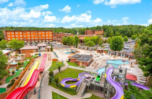 Beautiful, gigantic resort condo. 2 bedroom/2 bath. Sleeps 8 comfortably (there is a fee per guest/per night after 6 guests) . Full kitchen with all utensils provided. Hot tub in living room. Many restaurants, bars, shops on site. 18-hole golf course. Phenomenal Indoor/Outdoor water parks (passes included in room rate). Passes valid until water park closure on the day of check out. Check in 4:00 pm/Check out 10:30 am.