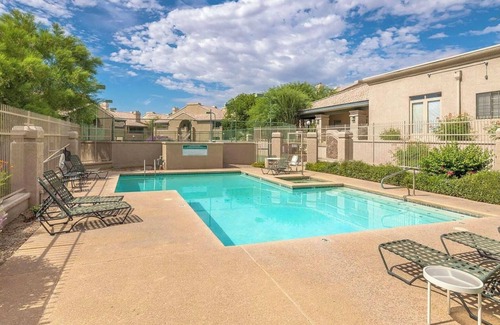 this peaceful escape offers access to hiking trails, three challenging nine-hole golf courses Pool access, Tennis/Pickle Ball courts, and gym on site..