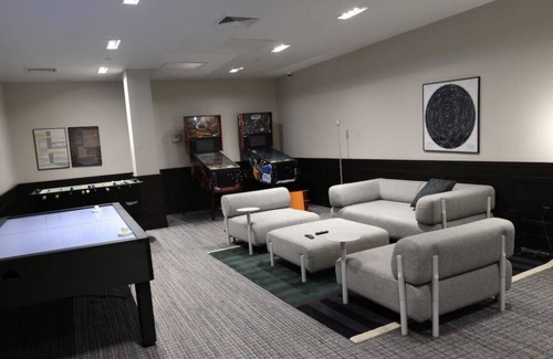 This high rise luxury apt is 15 min outside nyc close to all public transportation with washer & dryer inside unit full gym in building game room and play room for children rooftop with views of nyc !.