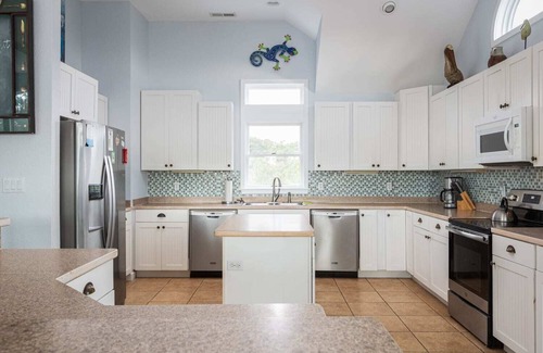 this three-level vacation home is thoughtfully designed to cater to guests of all ages, providing comfort and entertainment throughout
