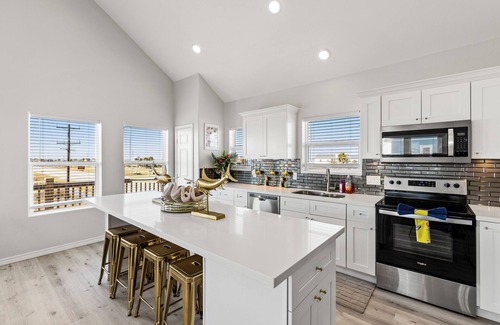 The unobstructed views from the front balcony are like no other! Get ready to relax in this 4-bedroom house near Crystal Beach on the 2nd row. This lovely property features 1 king bed and 3 queen bunk beds, perfect for families or groups of friends. With amenities like a washing machine, WiFi, A/C and heating , guests will enjoy a relaxing stay. We're happy to assist with any questions while you stay at our house..