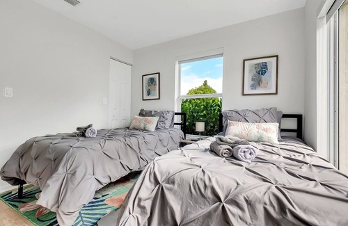 Welcome home! come in and relax in this completely renovated home with a nice POOL in a quiet residential neighborhood on a tree lined street. Brand new bathrooms and a new kitchen. Cheerful and bright furnishings, with new linens and a stocked kitchen. Parking for 2 cars in driveway w/free street parking. High speed WIFI with TVs in every room. Enjoy the backyard shaded dining area with a brand new gas grill to enjoy the Florida weather.