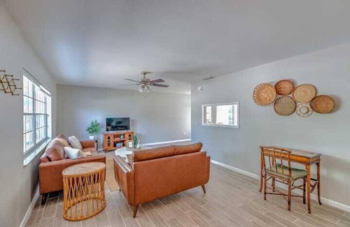 nestled in the heart of vibrant vero beach, discover the sunny stay cottage, a recently renovated modern-bohemian haven that promises a delightful retreat With 3 bedrooms and 2 full baths, this freshly updated abode boasts free high-speed WiFi, a dedicated work station, and a cozy coffee corner, making it the ideal home base for both relaxation and productivity.