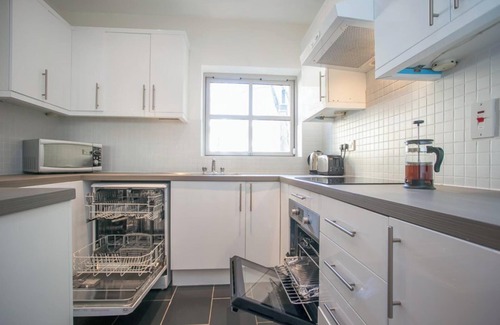 includes modern appliances, cookware, crockery, cutlery, kettle, toaster, oven, and fridge/freezer—perfect for cooking full meals at home