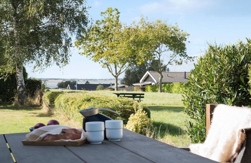 your holiday home is surrounded by a spacious garden that offers plenty of room for relaxation and leisure activities Enjoy sunny days on the terrace with a view of the green landscape and the glittering sea in the background. Or let the children jump on the trampoline and let off steam outdoors. Inside the house you will find a friendly, bright interior. The open-plan kitchen invites you to cook together and enjoy meals at the dining table with a view of the garden. Relax on the cosy sofa in the living room, which is clad in warm wood, and spend your evenings playing fun board games or solving a challenging puzzle together.