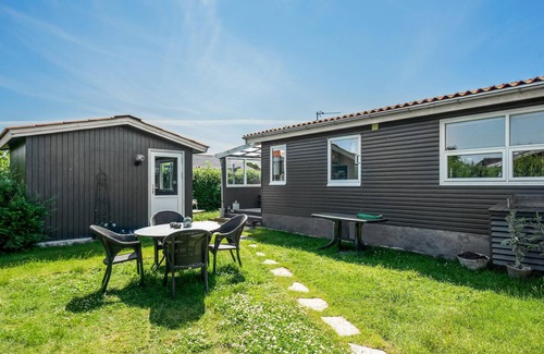 This cosy holiday home is located near a really good and child-friendly sandy beach and in a holiday home area. The house has several good terraces, two of which are covered and one is closed on all sides like a conservatory. The house has a lovely living room with a good dining area and a sofa group near the wood-burning stove and a well-equipped kitchen. In the holiday home itself there are two good bedrooms and an annex with a further four beds in bunk beds. The annex is easily accessible via the terrace. There are two bathrooms in total - one in the house and one with access from the covered terrace. The house also has a carport so that your car is protected from the sun and rain.