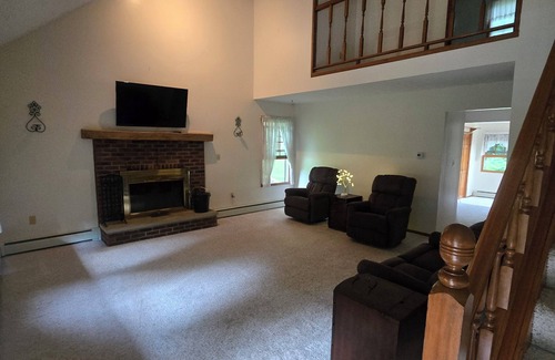 Stay comfortably in Ashtabula at this 3-bedroom house on 7 acres nestled back in the woods. This house features privacy, quiet peaceful environment with plenty of wildlife to observe such as deer and turkeys. Stroll through the woods to the Ashtabula River or the pond in the trees up front. Each bedroom features a king, queen, or full bed, ensuring a good night's sleep for all guests. With amenities like WiFi, AC, and a washing machine, your stay will be convenient and stress-free. The peaceful atmosphere of this welcoming property, along with 2 bathrooms equipped with showers and hair dryers, will make you feel right at home. The kitchen is equipped to serve 6 to 8 people with cookware, coffee pot and a insta-pot. Lake Erie is less than 10 minutes away to the harbor, lakeshore park and more. The nations longest covered bridge is only a few minutes away. Fall in love with Ashtabula and enjoy the magic it has to offer..