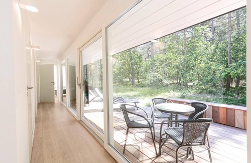 Modern and beautiful quality holiday home with bright and modern interior and attractive location near a good sandy beach, surrounded by cycling and hiking trails. This beautiful and spacious vacation home appears overall well equipped with a large open dining and living area with comfortable furniture, a wood stove and heat pump/air conditioning and free internet access. Beautiful, modern furnished open kitchen where preparing vacation meals with a view of nature is a pleasure. In this beautiful vacation home with high quality you have 3 good bedrooms and from the master bedroom you can directly access the terrace. 1 nice bathroom and a guest toilet, both with underfloor heating and the toilet with connection to the master bedroom. From the living room you can access a beautiful large wooden terrace, where you can relax in the beautiful garden furniture overlooking the forest and nature. You can refresh yourself in the Baltic Sea or go jogging in the forest and the town of Hasle is also not far from the vacation home. You can also use the outdoor shower, which is located by the house. There you can expect good shopping facilities, a cozy smokehouse, an outdoor swimming pool and much more. The high level of comfort and the many modern facilities of the house make it suitable for relaxing vacations in any season.