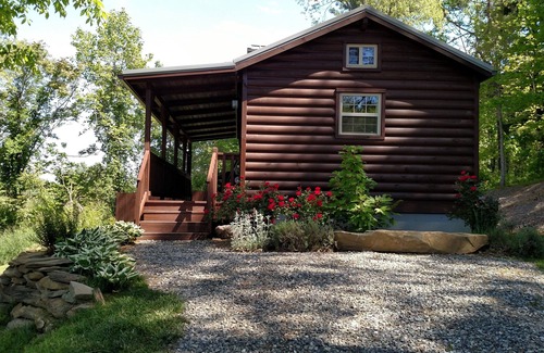 private, amish built cabin built on part of our 25 acre homestead, our home is located on the other side of the property. Watch wild turkeys and deer, from your front porch, and enjoy the sunset. Beautiful year round views, covered porch, private outdoor seating area with hot tub, 600 feet off the road, very quiet. Cabin is one bedroom, 400 sq feet inside with 100 sq foot porch outside.